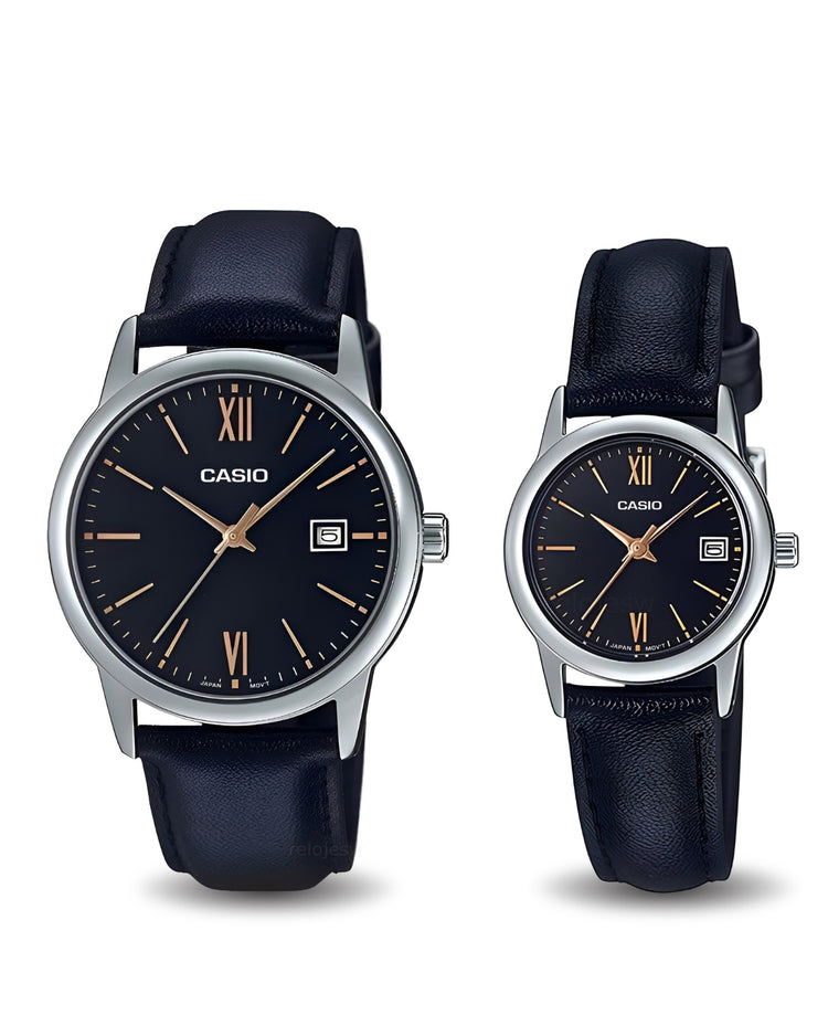 Reloj Casio Pareja Negro Plateado MTP-V002L-1B3-LTP-V002L-1B3
